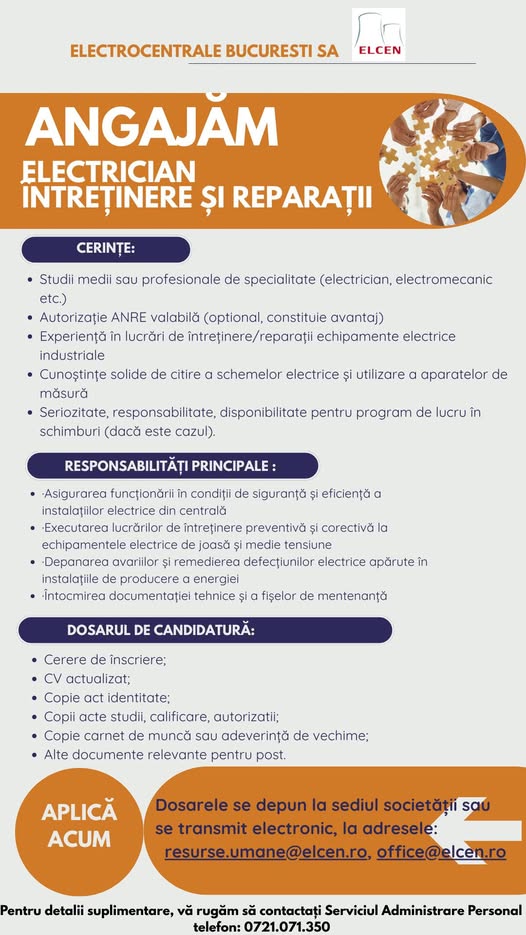 Dacă ești pasionat de domeniul energetic, îți dorești stabilitate și vrei să faci parte dintr-o echipă profesionistă, locul tău este alături de noi!