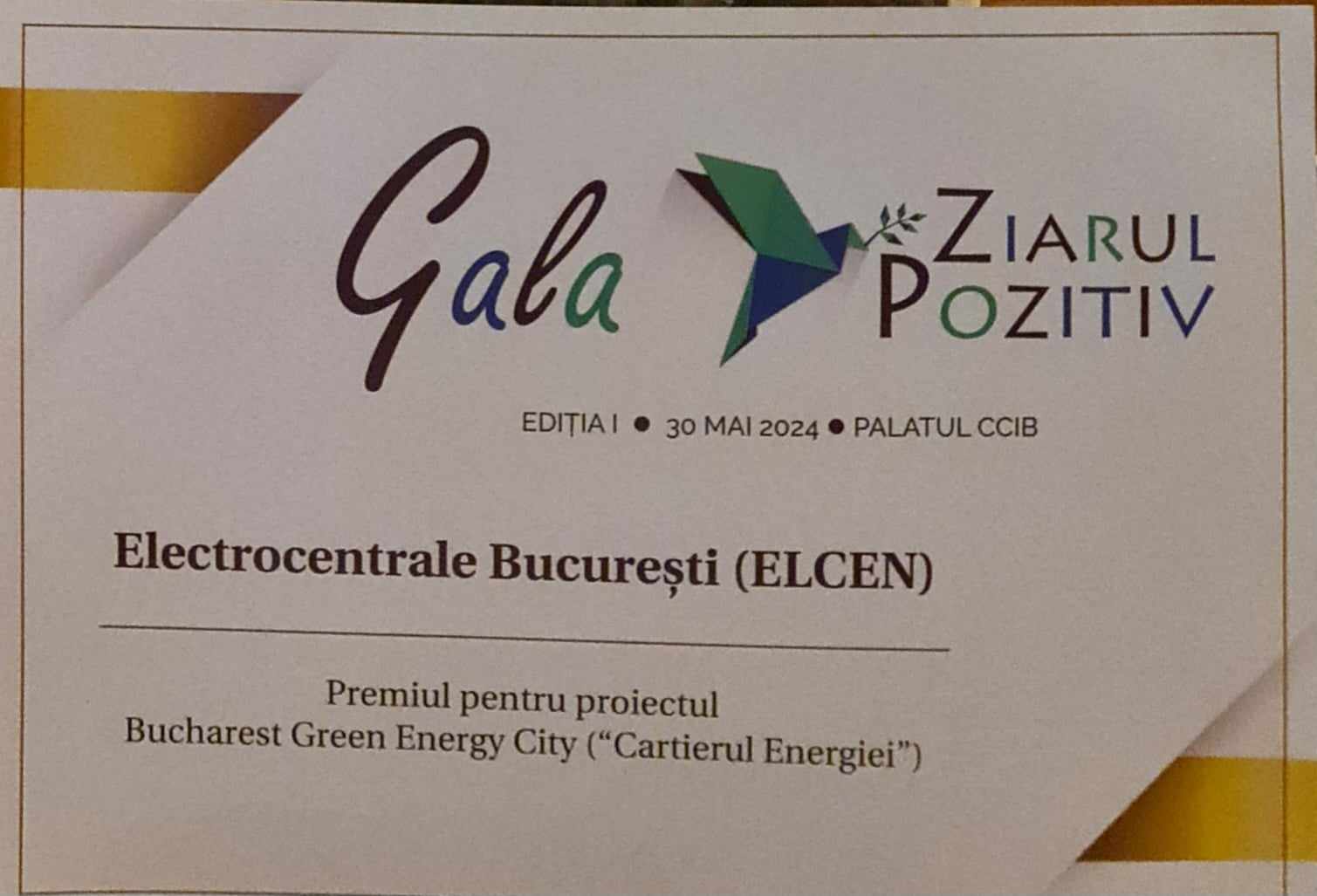 ELCEN a primit joi, 30 mai, premiul pentru proiectul Bucharest Green City – Cartierul Energiei în cadrul primei ediții a galei Ziarul Pozitiv.ro.Mulțumim organizatorilor pe această cale.