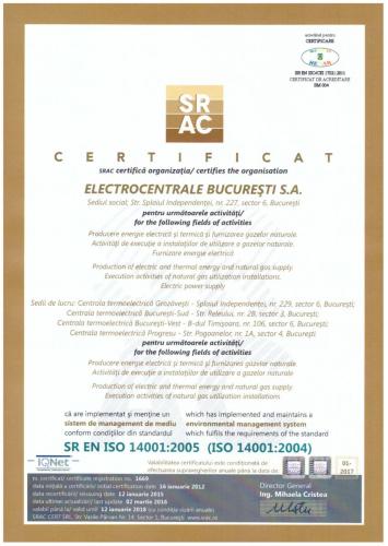 Preocuparea fundamentală a Electrocentrale Bucureşti S.A. este de a furniza servicii de un nivel calitativ superior, de reducere a impactului asupra mediului şi de reducere a riscurilor privind sănătatea şi securitatea în muncă a lucrătorilor.